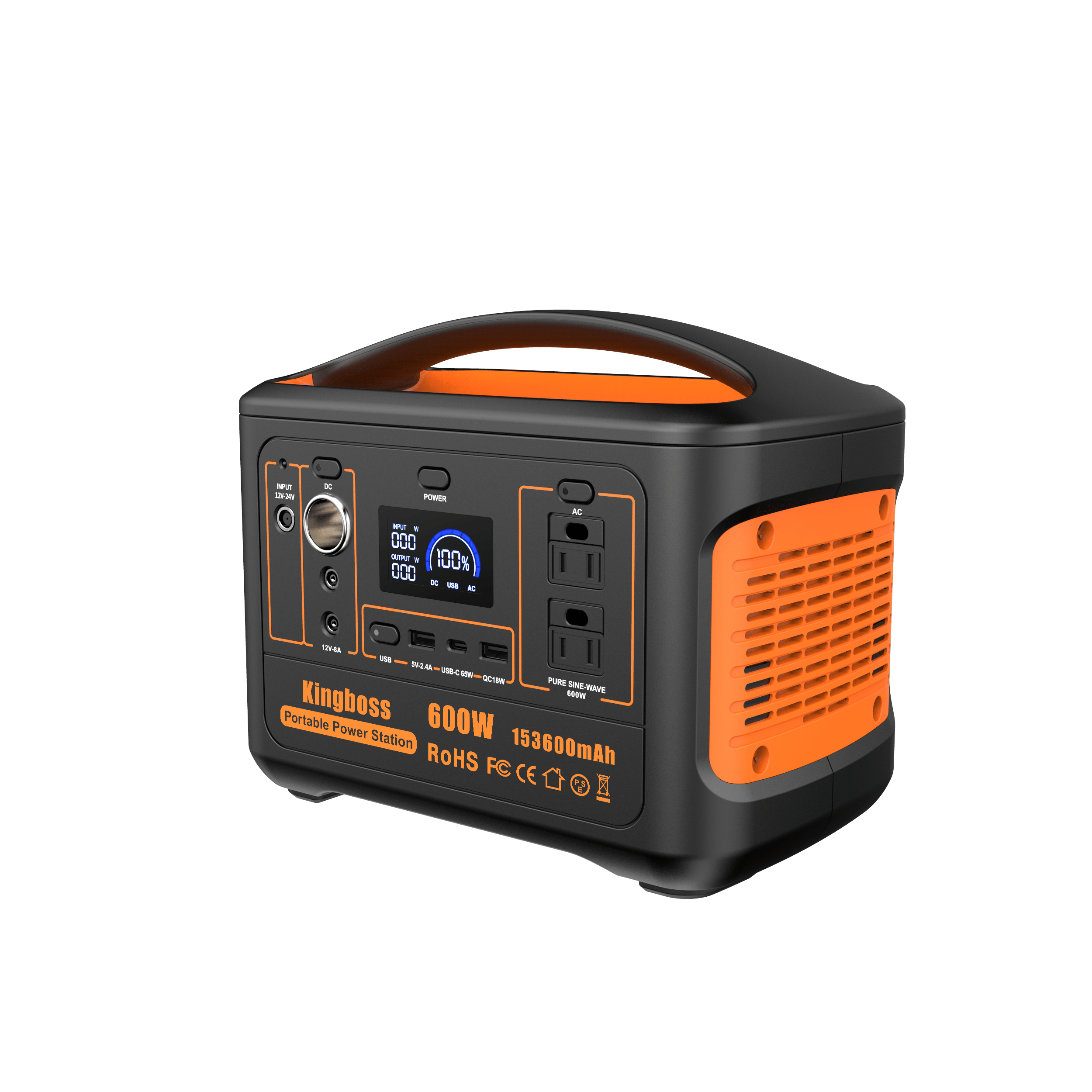 [MULTIPLE OUTPUT PORTS]: Kingboss Portable Power Station is featured with AC/DC/USB outputs: 2*110V AC output (600W); QC 3.0 USB port; 1*USB port (5V-2.4A); 1*USB-C PD65W; 1*DC input with 1*DC input (12V- 24V).[DEVICES]: Our Portable Power Station can charge devices such as: Computer; Jump Starter; Mini Projector; Fan; Mini Fridge; Printer; Drone; Phones/Tablet; Powertool; Laptop/TV. Only Devices up to 600W can be charged.[INCLUDES]: Kingboss Electric Generator includes 600W outdoor and indoor power supply; Car charger; AC power adapter; USB-C Cable + Kingboss Travel Carrying Case. Our 600W Power Station is perfect to be transported due to its weight (11Ibs) and size (7.70x5.20x9.10in).[RECHARGING METHODS]: Our Battery Powered Outlet can be recharged: With a compatible 100W solar photovoltaic panel (8 hours); With our car charger (12 hours); With AC Wall Outlet (6.5 hours). Lithium Battery 1000W recharges faster than other batteries.[PROTECTION]: Kingboss Battery Generator is equipped with an advanced BMS (Battery Management System) Multiple Outlet that protects the battery and devices against short circuits; over-temperature; overcharging; overvoltage and overpowering.[SAFETY]: Our power bank includes a Pure Sine Wave AC output that ensures stable and safer charging; and reduces audible and electrical noise. On top of that; it contains an MPPT controller built-in for optimized high-efficiency solar charging.[RELIABLE]: To give customers a pleasant experience; Kingboss offers a 2 Year Warranty that allows you to return the portable generator by 7 days in case it is defective; and a 24/7 customer service. Camping outdoor awaits you with our Solar Generator!