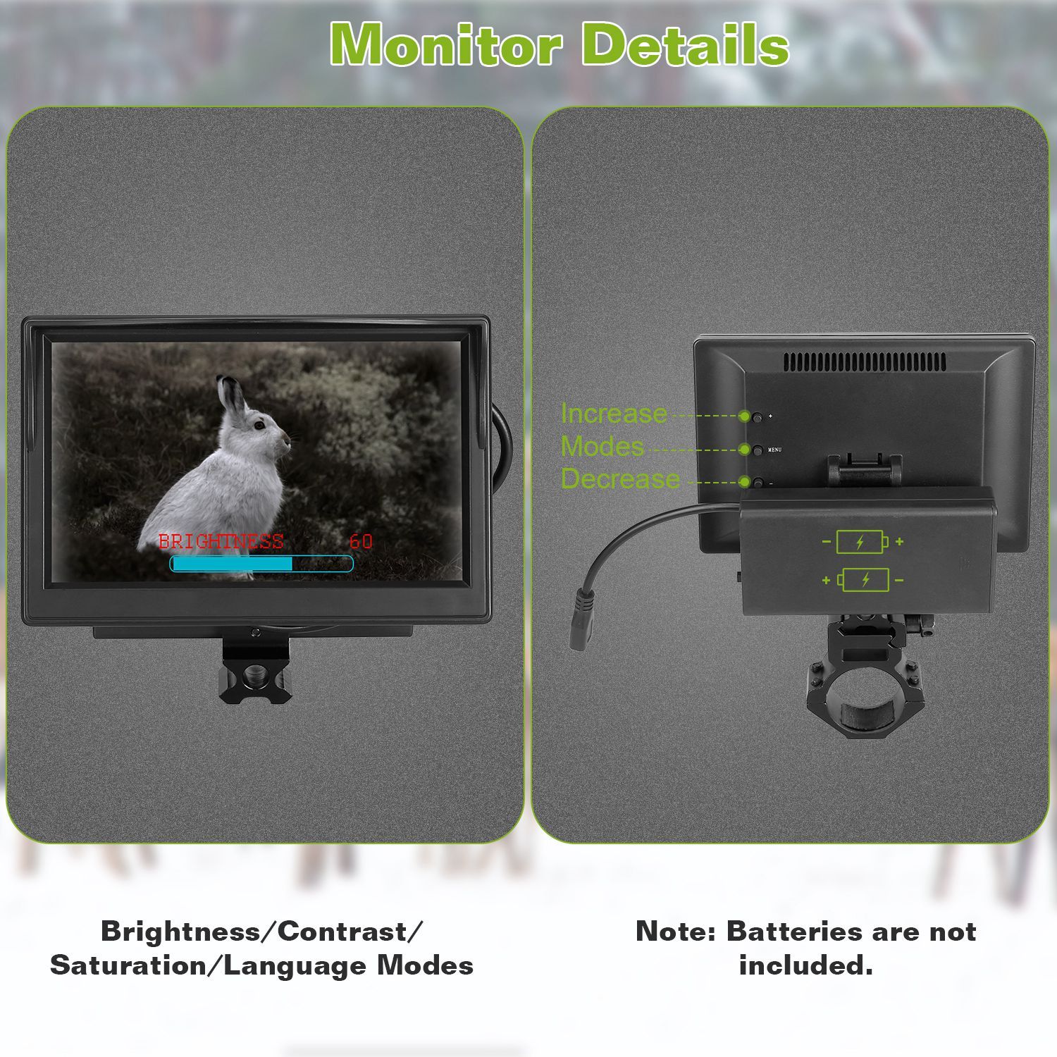 *5' Wide Screen*:Comes with the 5in(10.5x6cm) LCD screen,which can offer a clear and large image(video) display on the monitor,it is more comfortable to view images than through the scope directly.