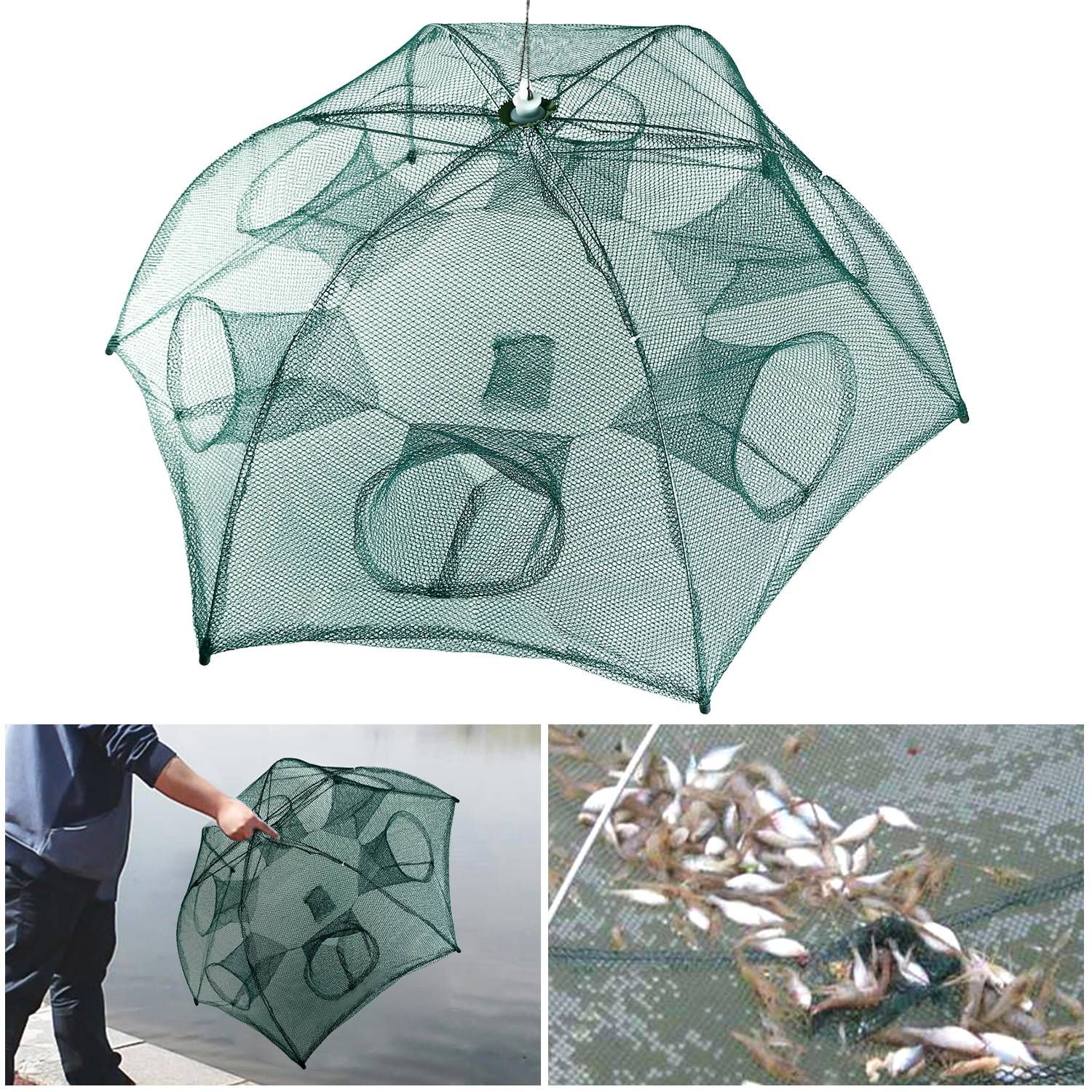 Our fishing trap net adopts high-grade nylon net and premium steel frames, strong, sturdy and durable. Each of its side (6 sides in total) comes with an entrance to let the fish, shrimp, minnow, lobster and crab swim into the trap conveniently. It has a foldable design to allow you to open and close it easily and it is lightweight (only 0.57lbs) to carry on your vacation. Additionally, it comes with a bottom opening to place the bait or take out the preys conveniently.
