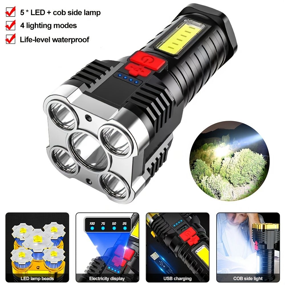 5 LED Flashlight; USB Rechargeable Strong Light With COB Side Searchlight For Outdoor Travel Emergency 5 LED Flashlight; USB Rechargeable Strong Light With COB Side Searchlight For Outdoor Travel Emergency 5 LED Flashlight; USB Rechargeable Strong Light With COB Side Searchlight For Outdoor Travel Emergency 5 LED Flashlight; USB Rechargeable Strong Light With COB Side Searchlight For Outdoor Travel Emergency 5 LED Flashlight; USB Rechargeable Strong Light With COB Side Searchlight For Outdoor Travel Emergency 5 LED Flashlight; USB Rechargeable Strong Light With COB Side Searchlight For Outdoor Travel Emergency