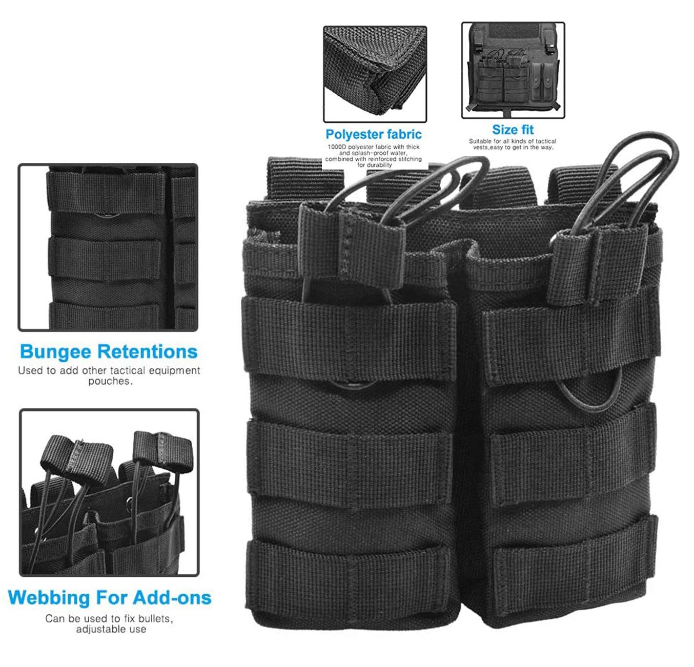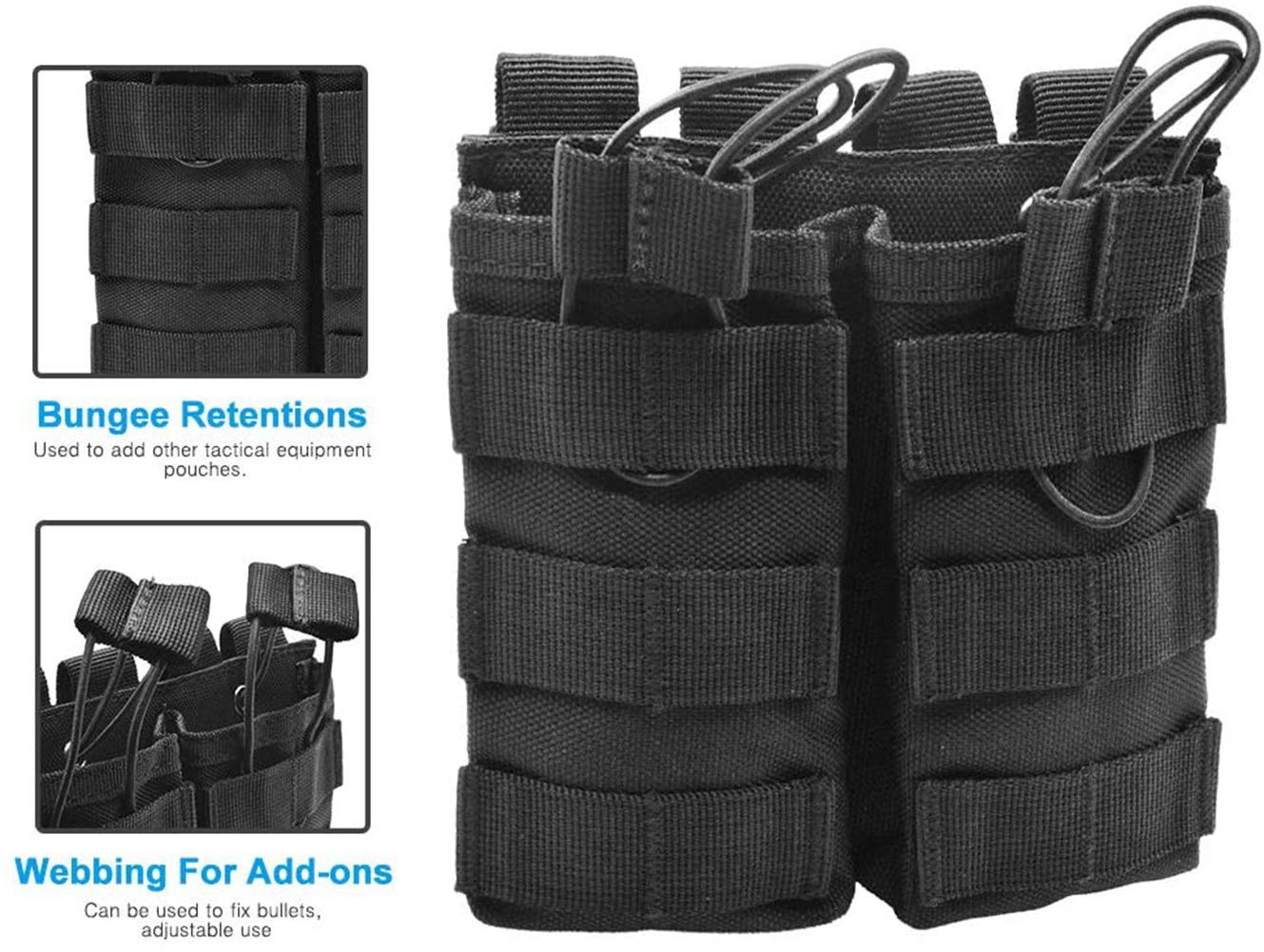 4.[Open Top Elastic Ropes] Elastic bungee cords can be adjusted and effectively fix the magazine pouch. Even if you bend down or run fast, the magazine will not fall.