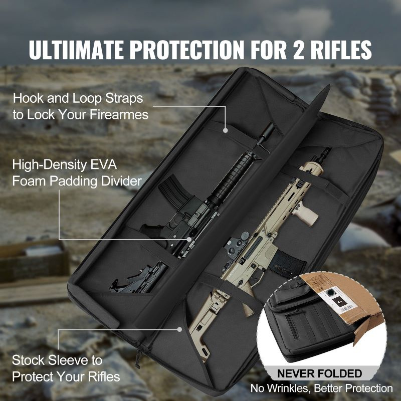 The soft rifle case features a high-density EVA foam padding divider.