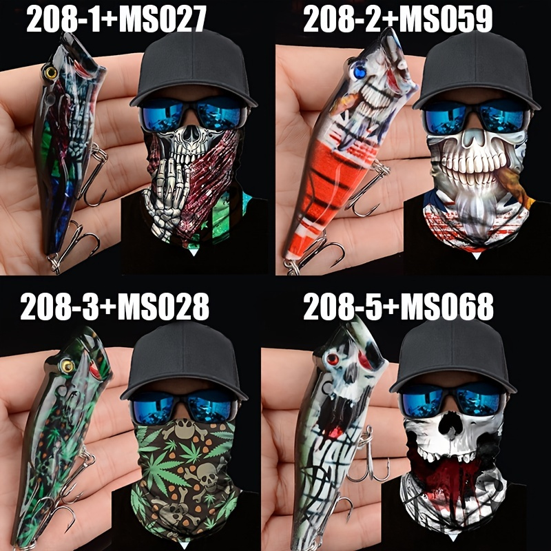 1pc Popper Lure Skull Fishing Lure Artificial Bait + 1pc Mask Magic Scarf Headband Balaclavas